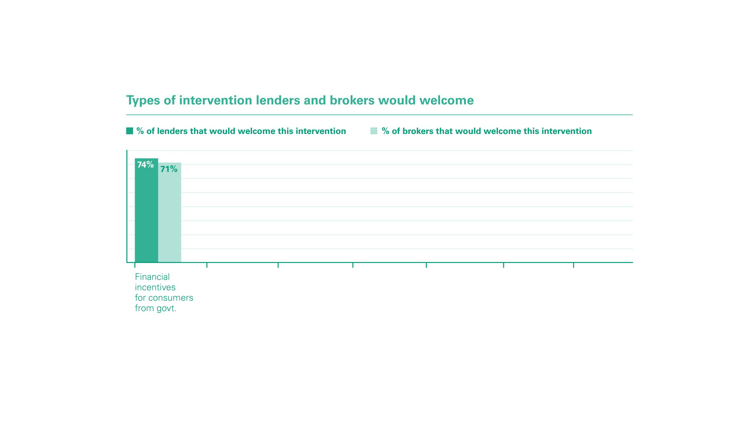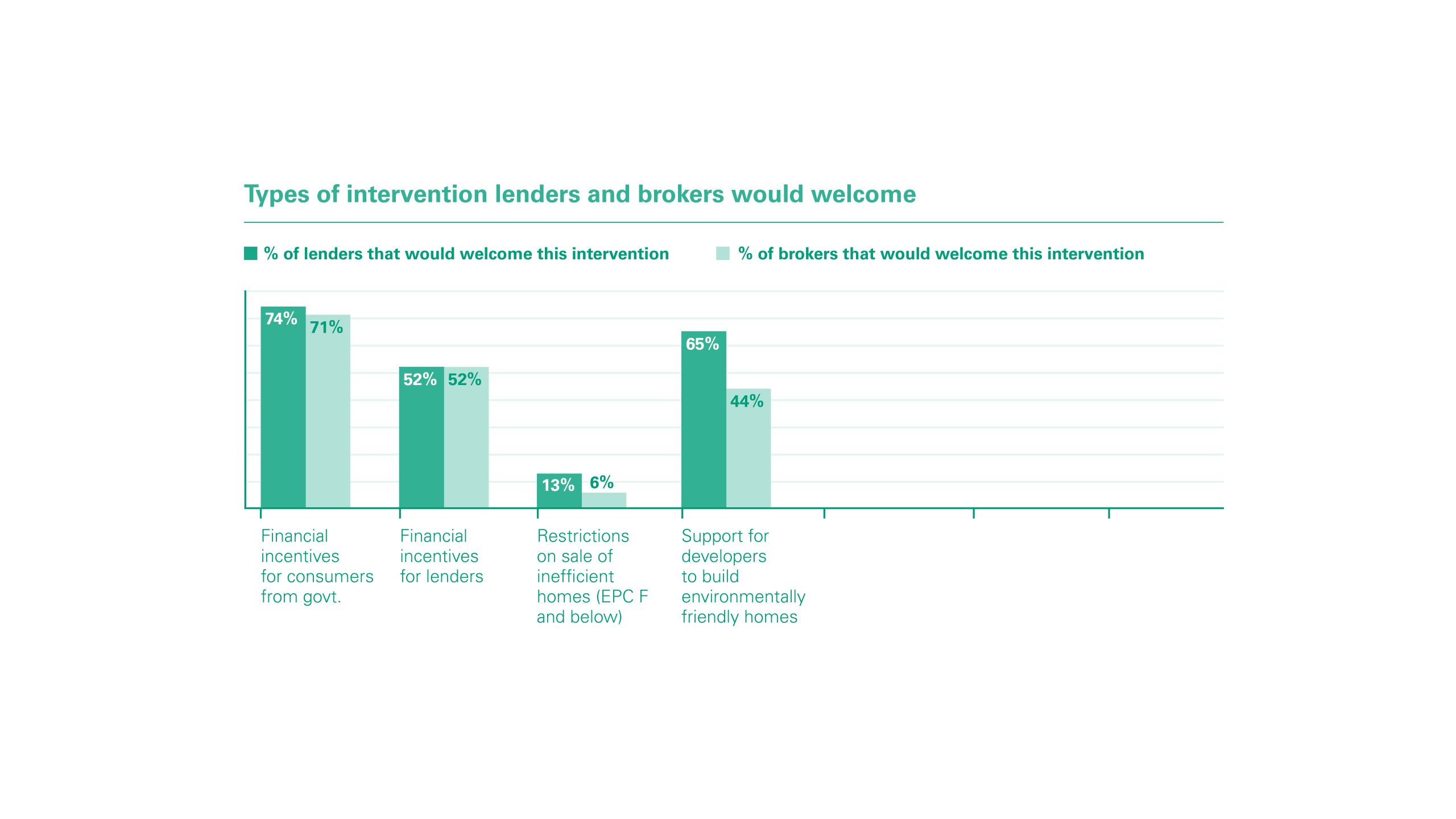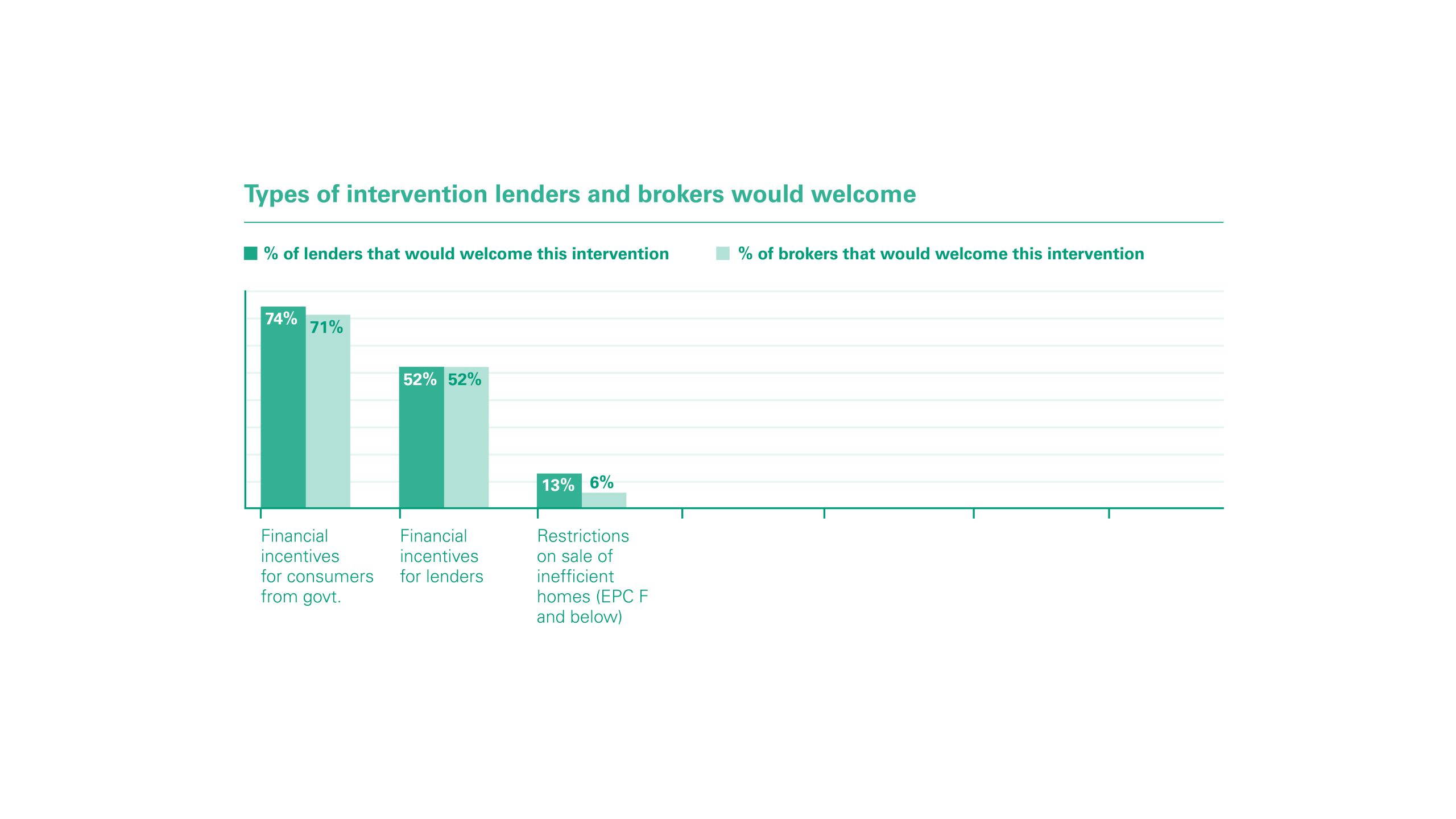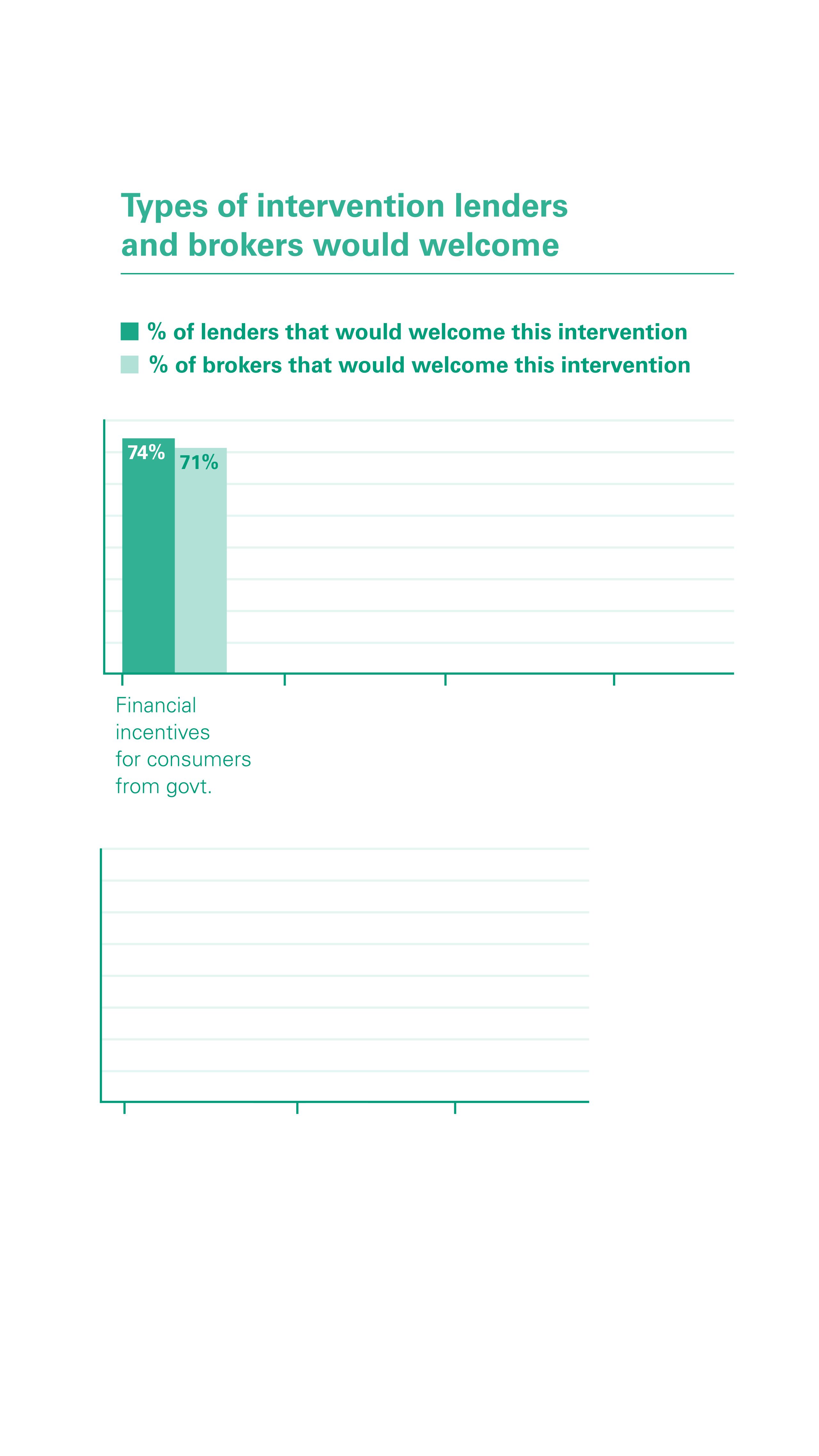 Another often cited barrier to the development of the sector is the lack of financial incentives from government, with 74% of lenders of the belief that this plays a key role in helping the market to move forward.