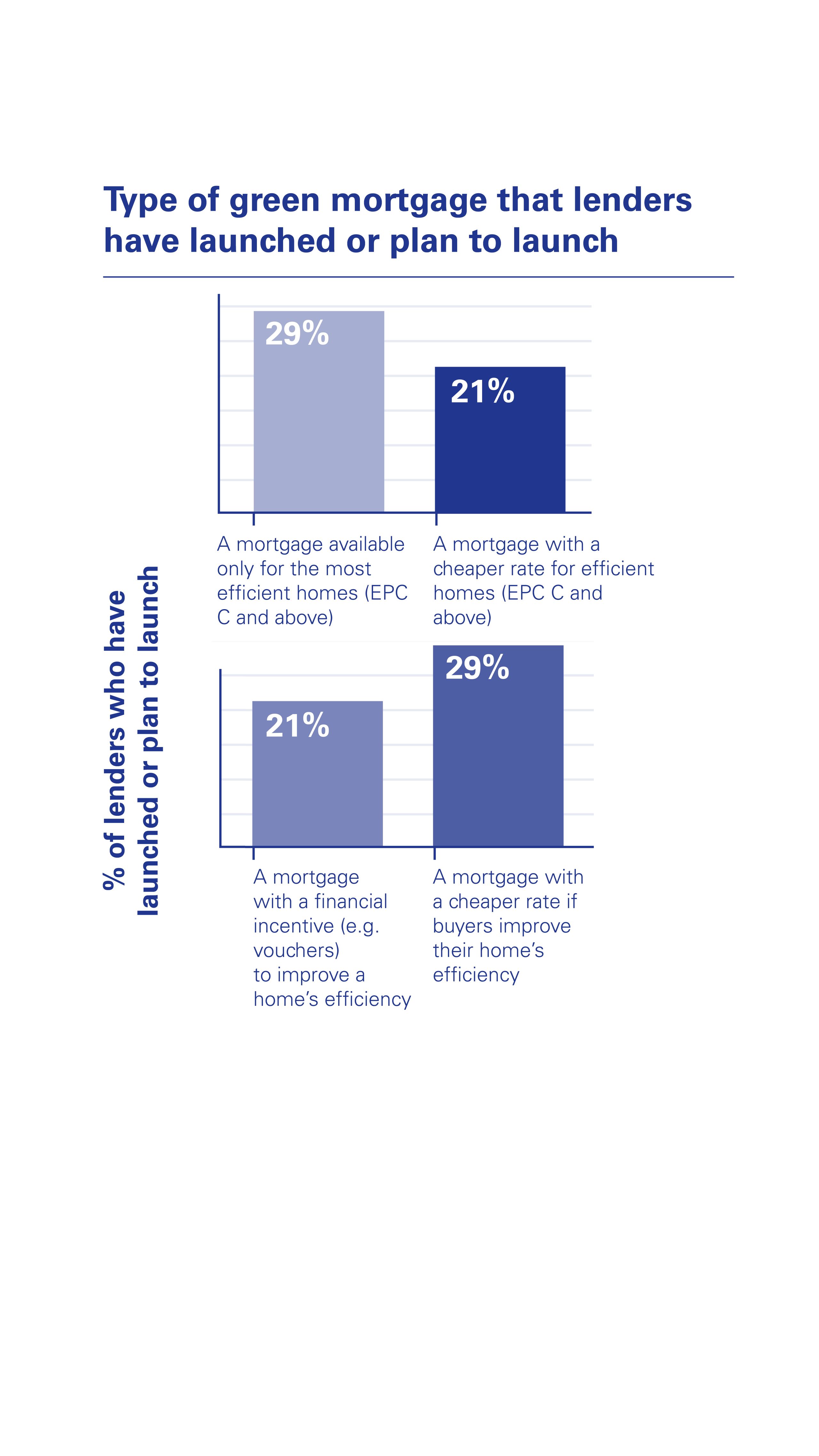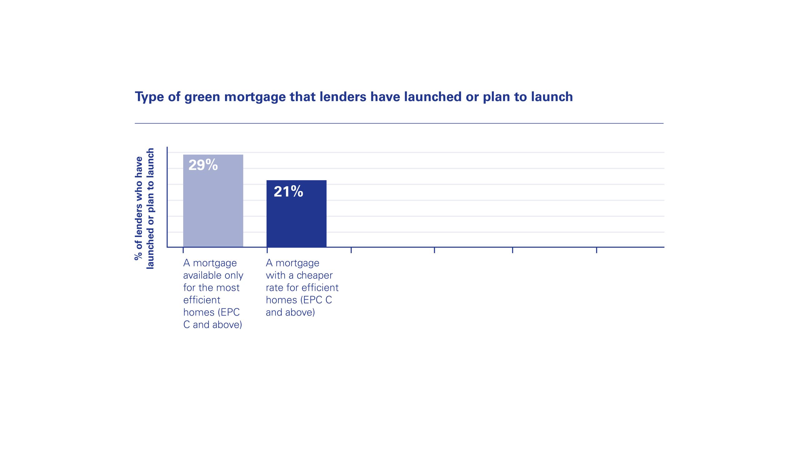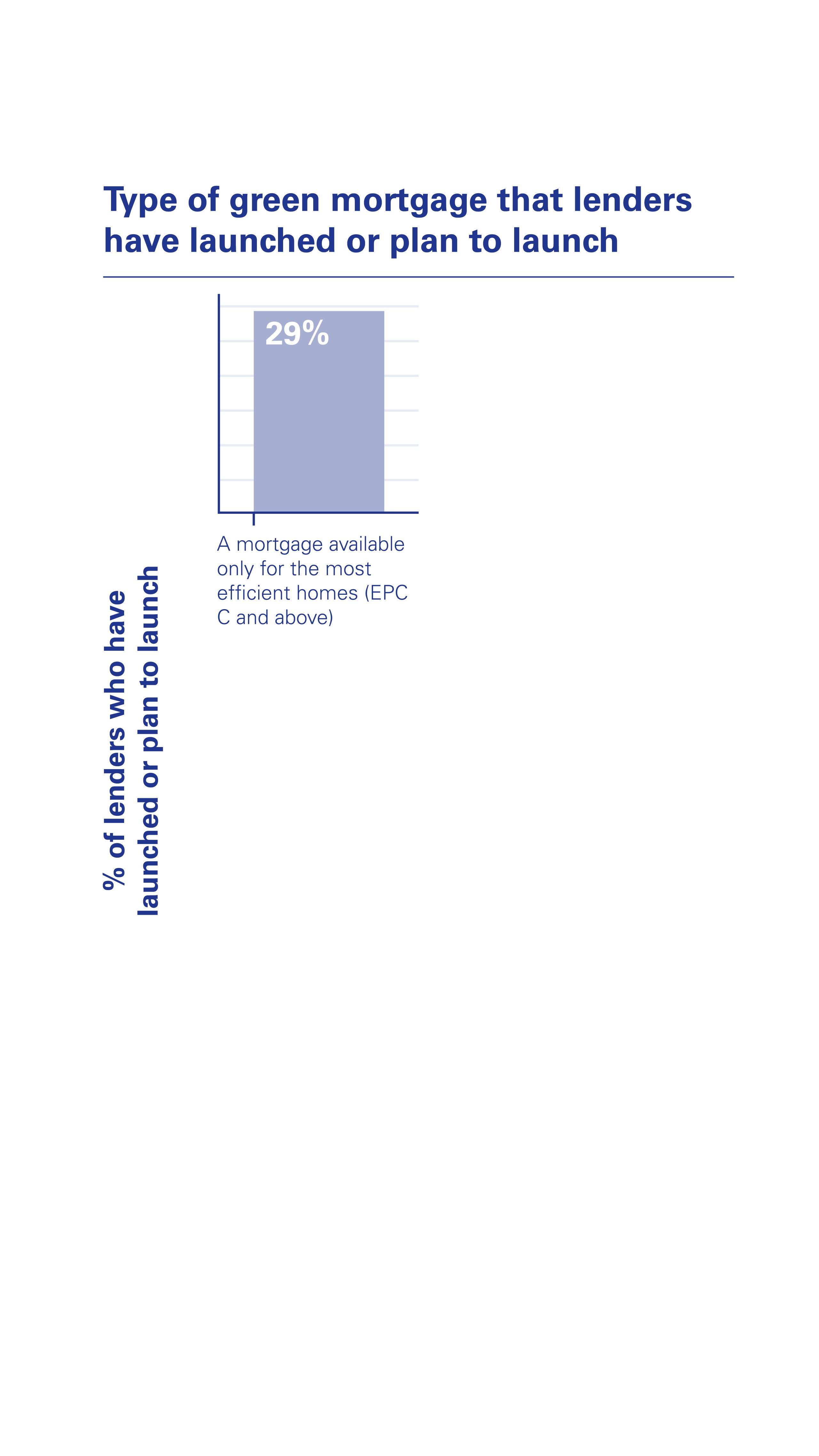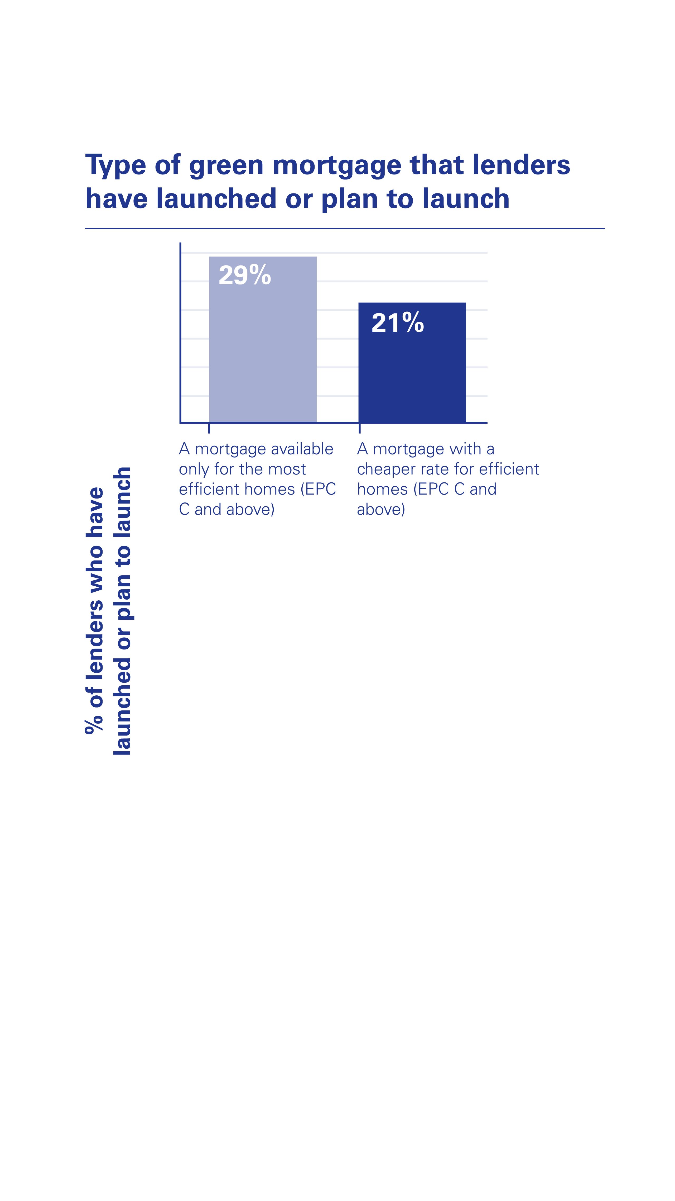 Interestingly, over a quarter (29%) of lenders surveyed said they had launched or planned to launch a mortgage that is only available to properties with an EPC C rating and above. A mortgage that provides a financial incentive such as vouchers for buyers to make their homes more energy efficient was outlined as being a key product feature by 21% of lenders when launching a green mortgage offering