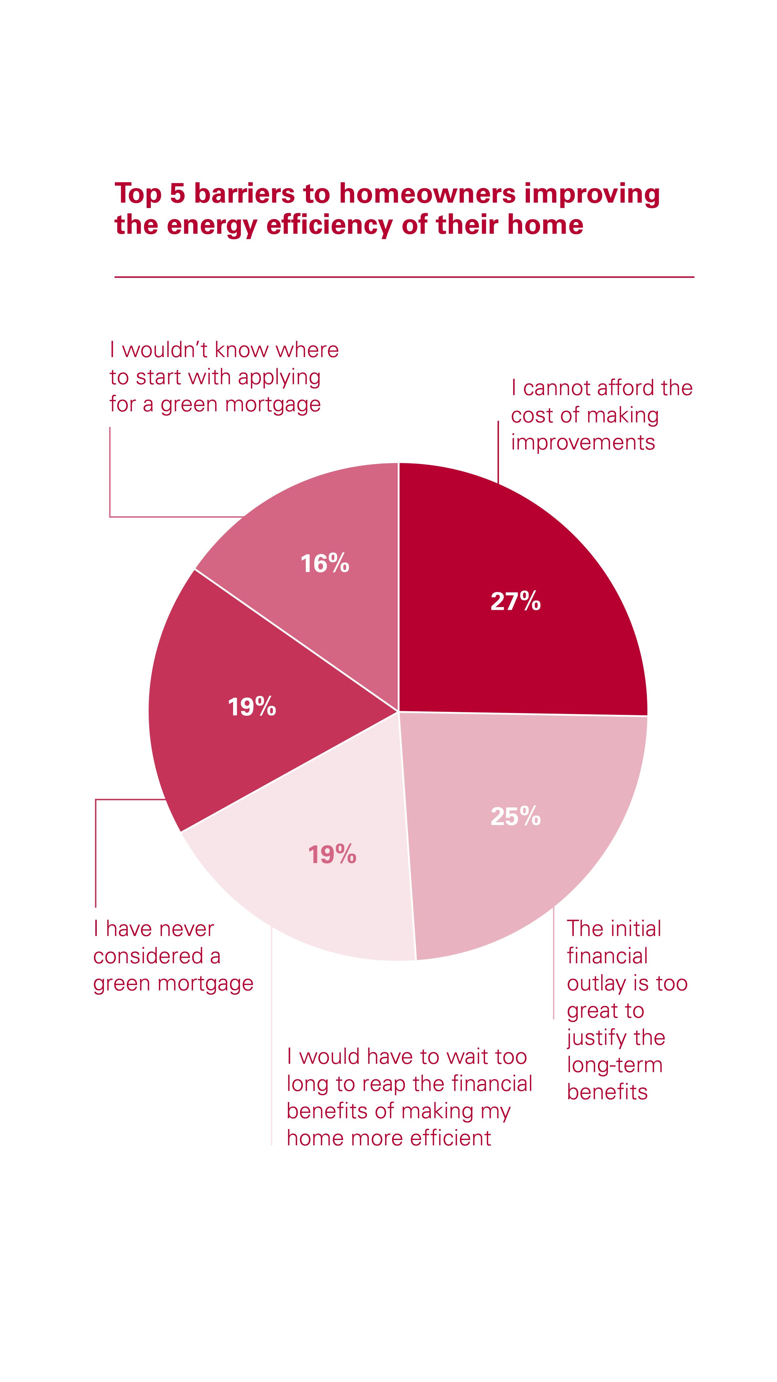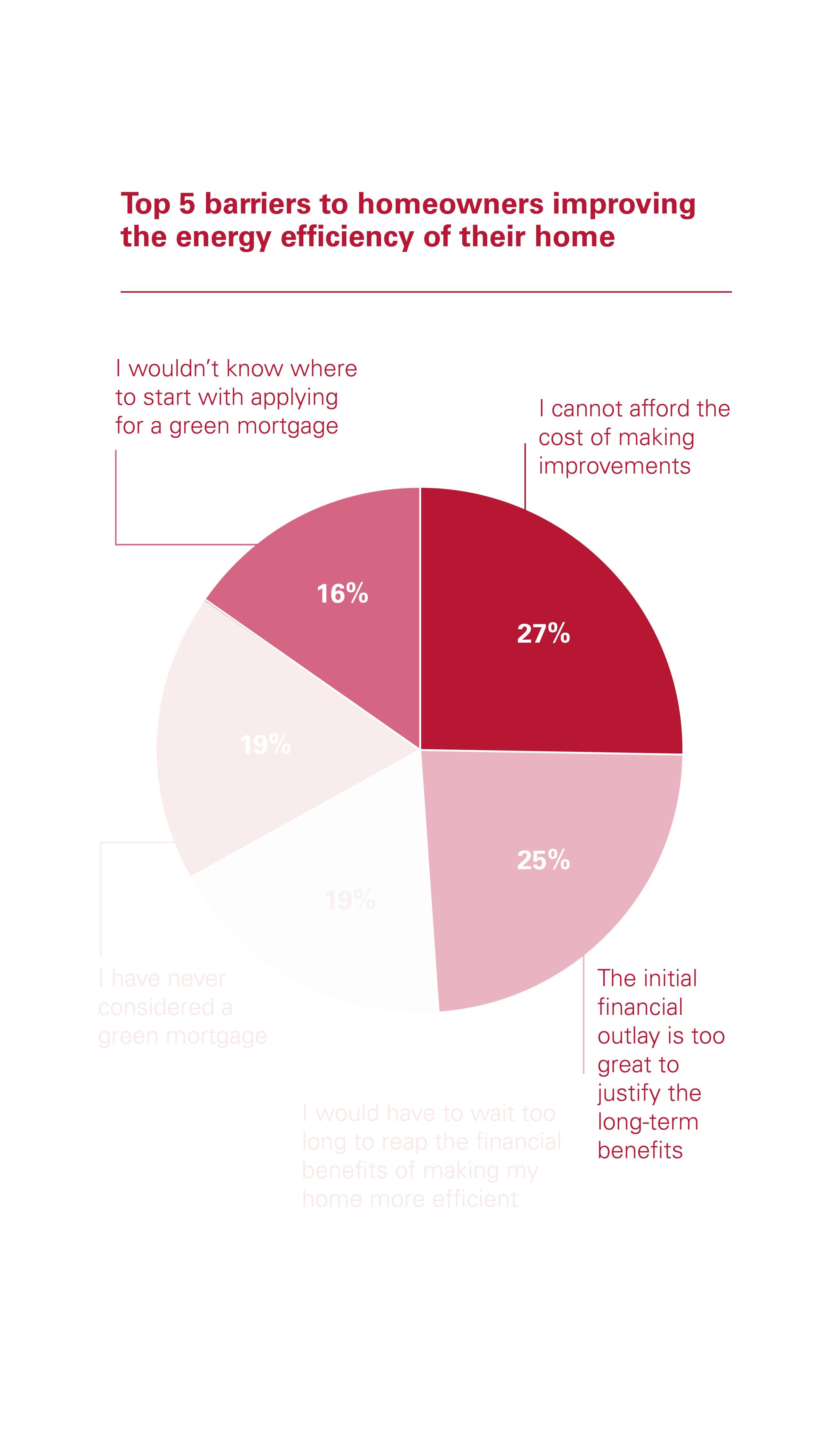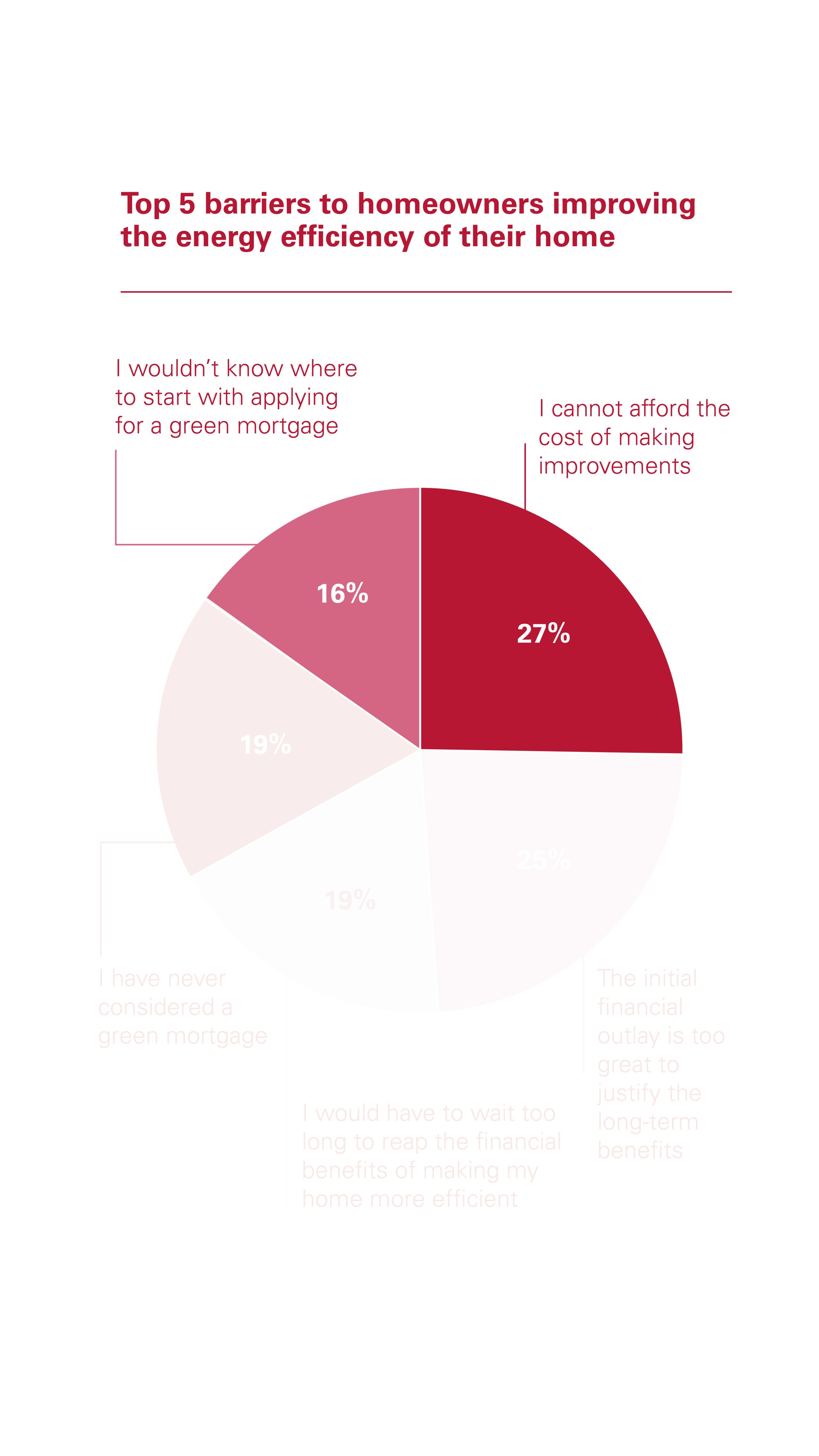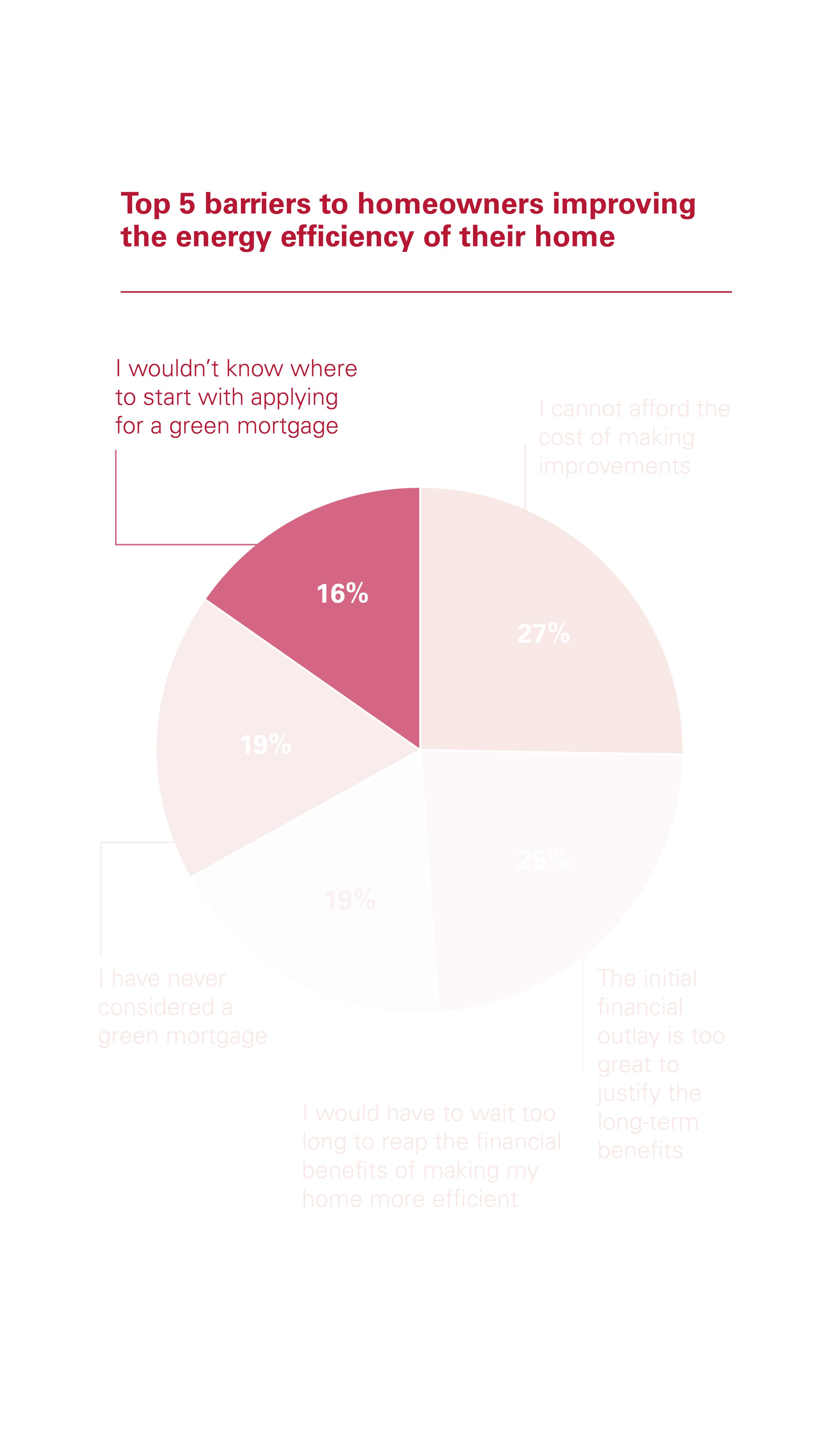 In addition, a further 25% said the initial financial outlay needed to improve the energy efficiency of a home was just too great to justify the longer-term benefits. This was also cited as a key barrier to consumer take-up by 75% of brokers and 84% of mortgage lenders.