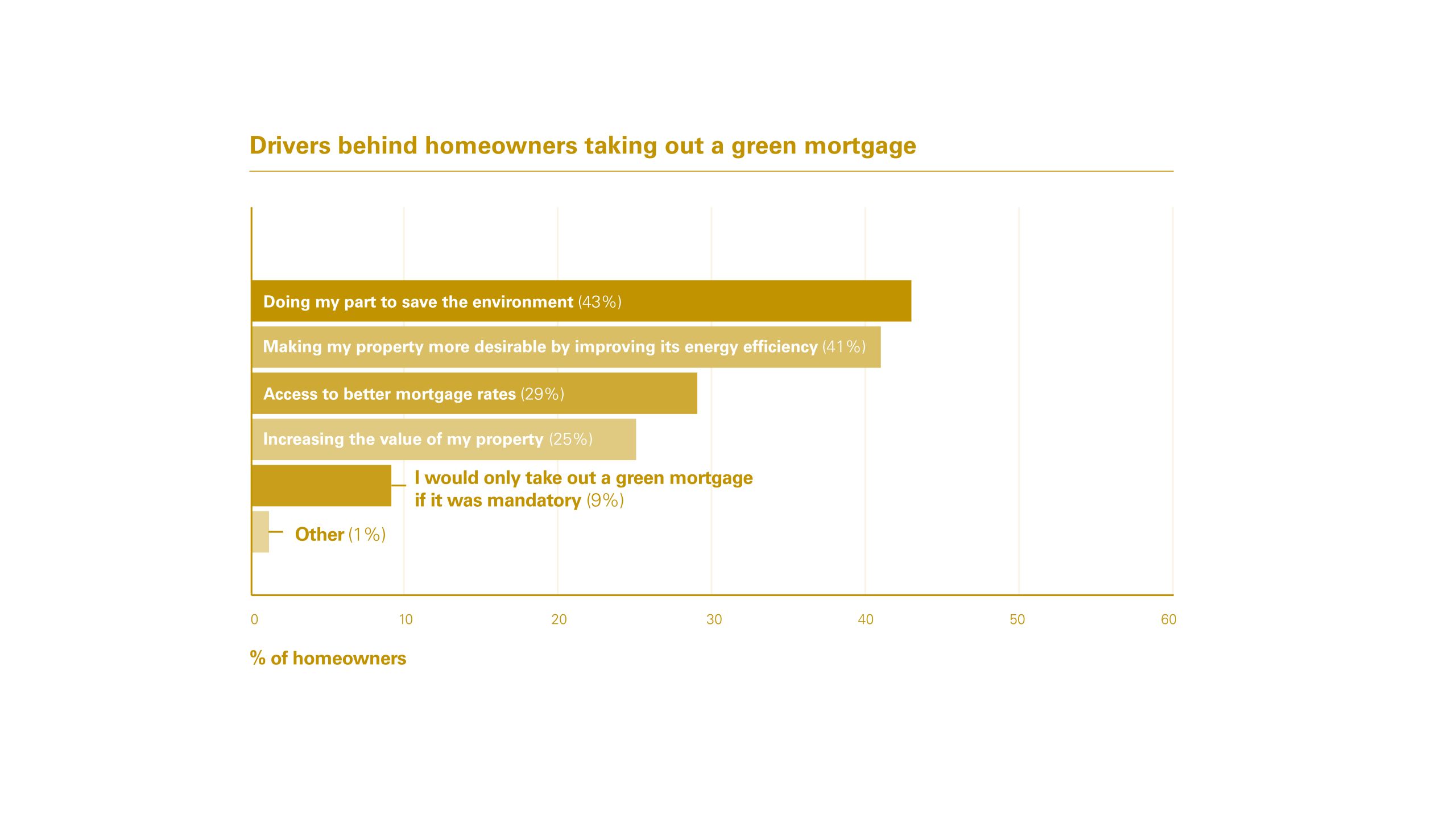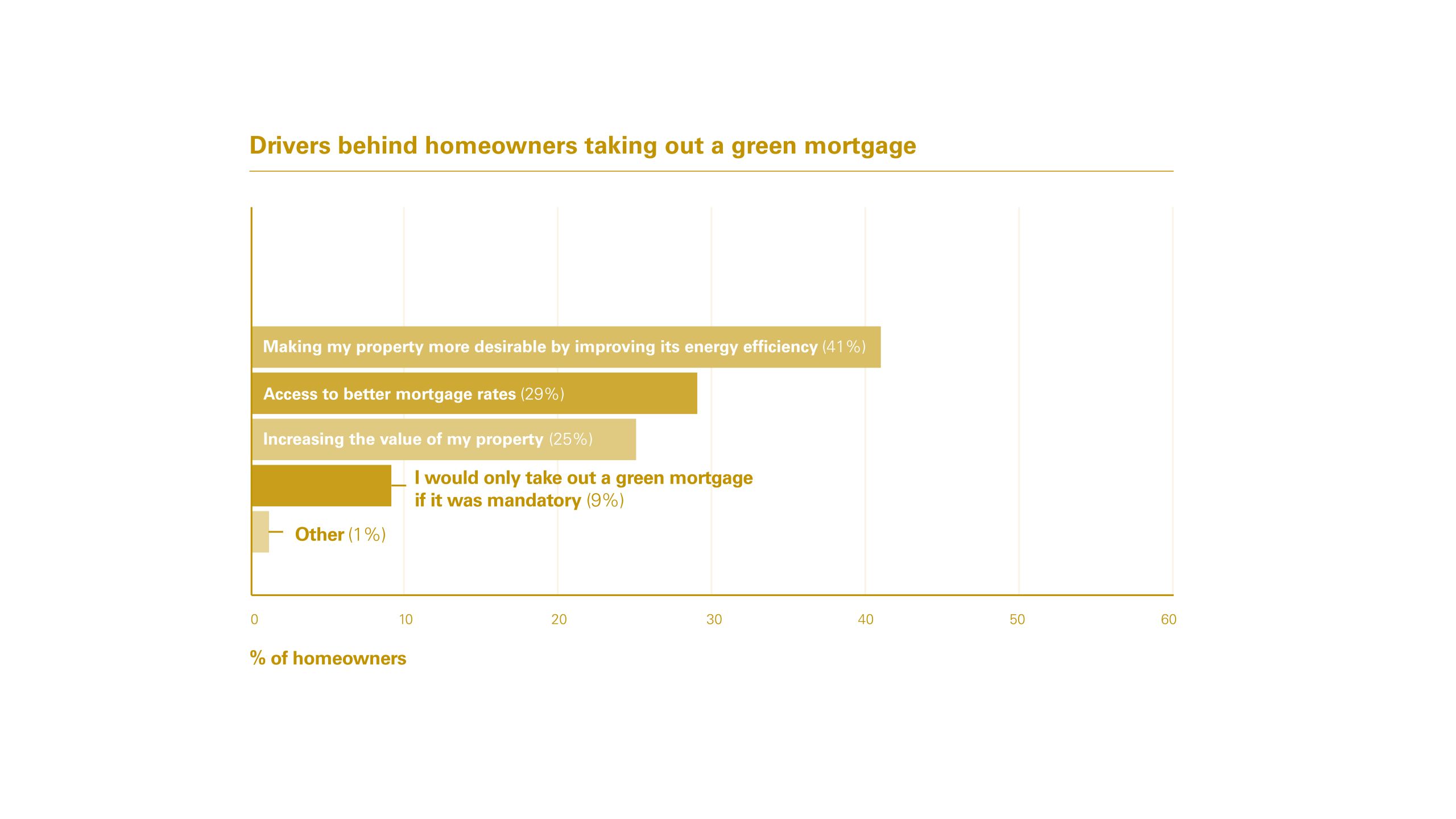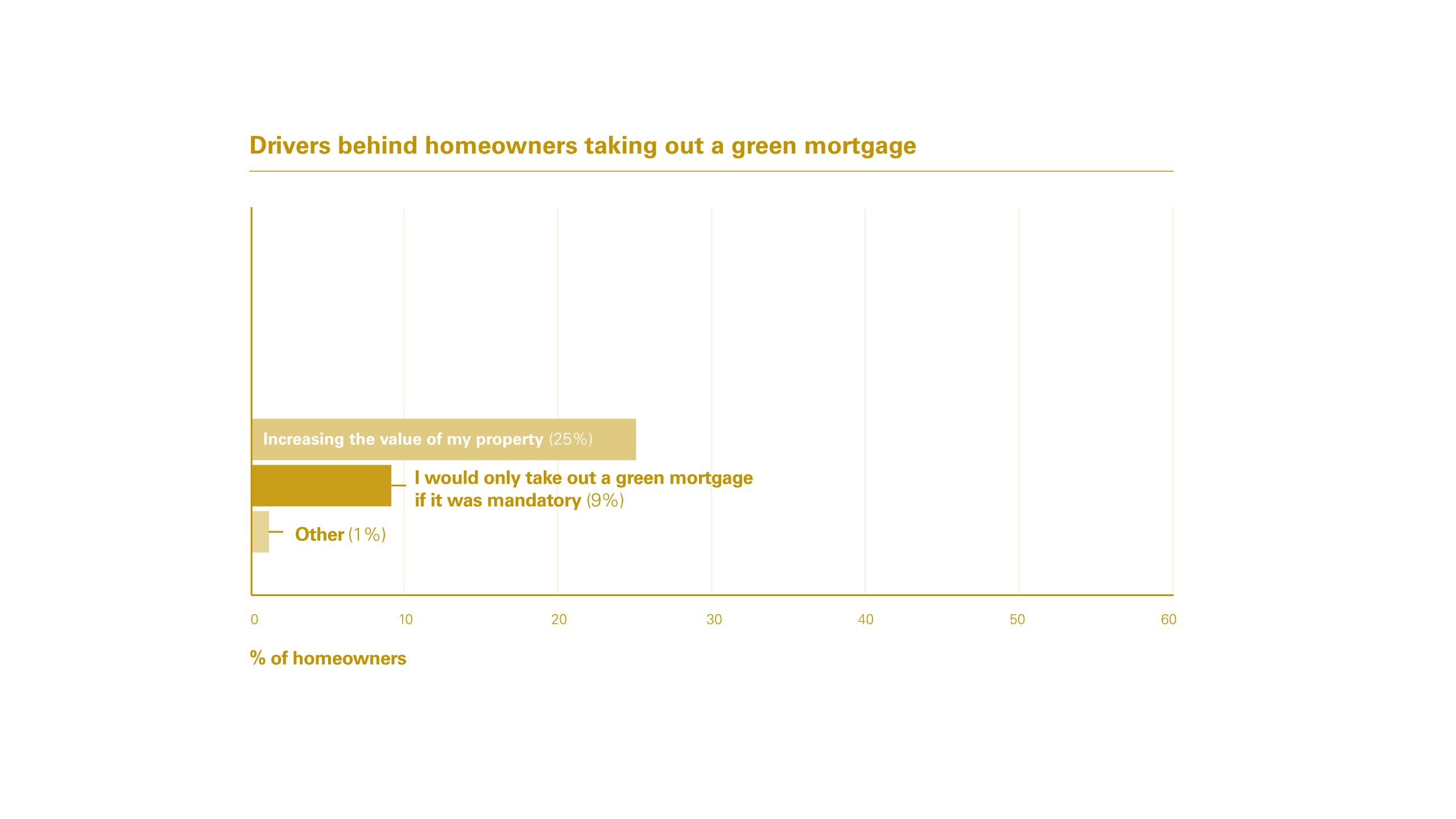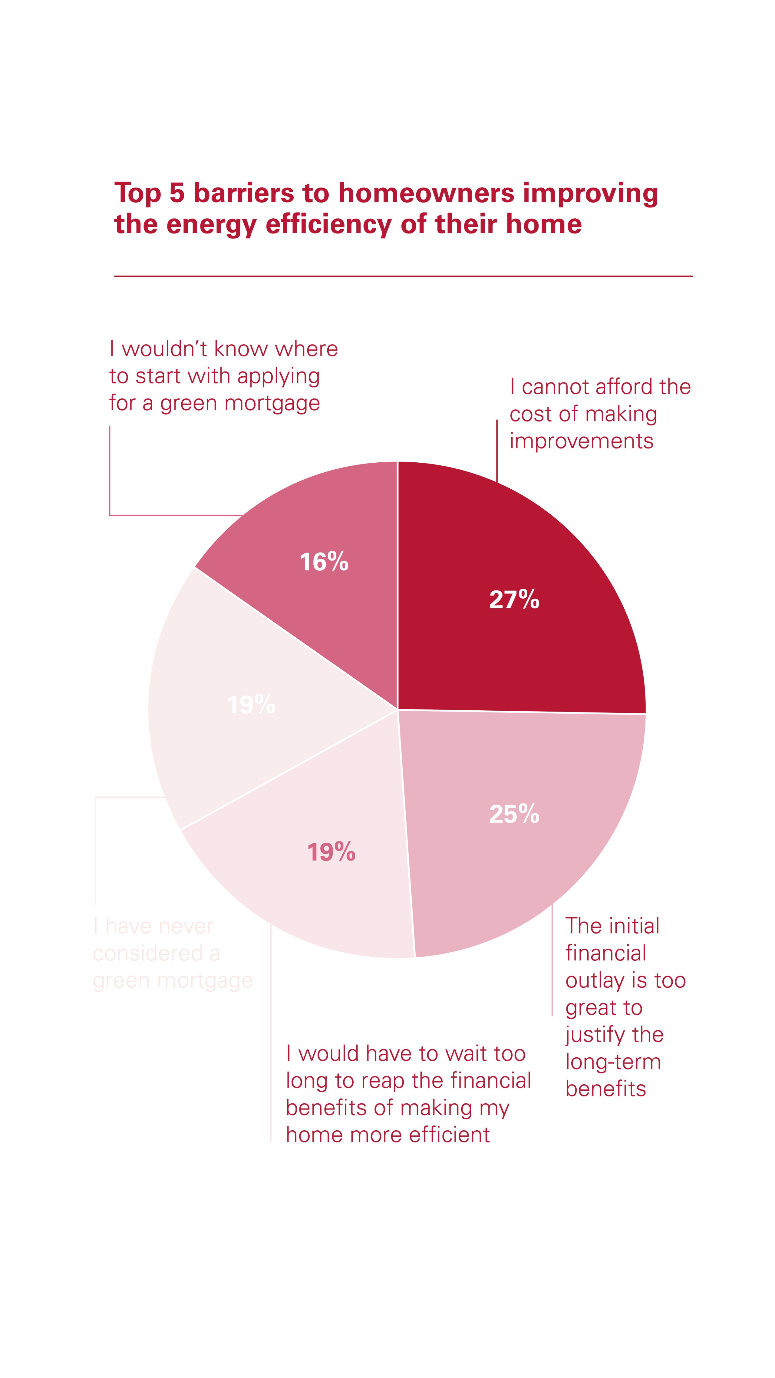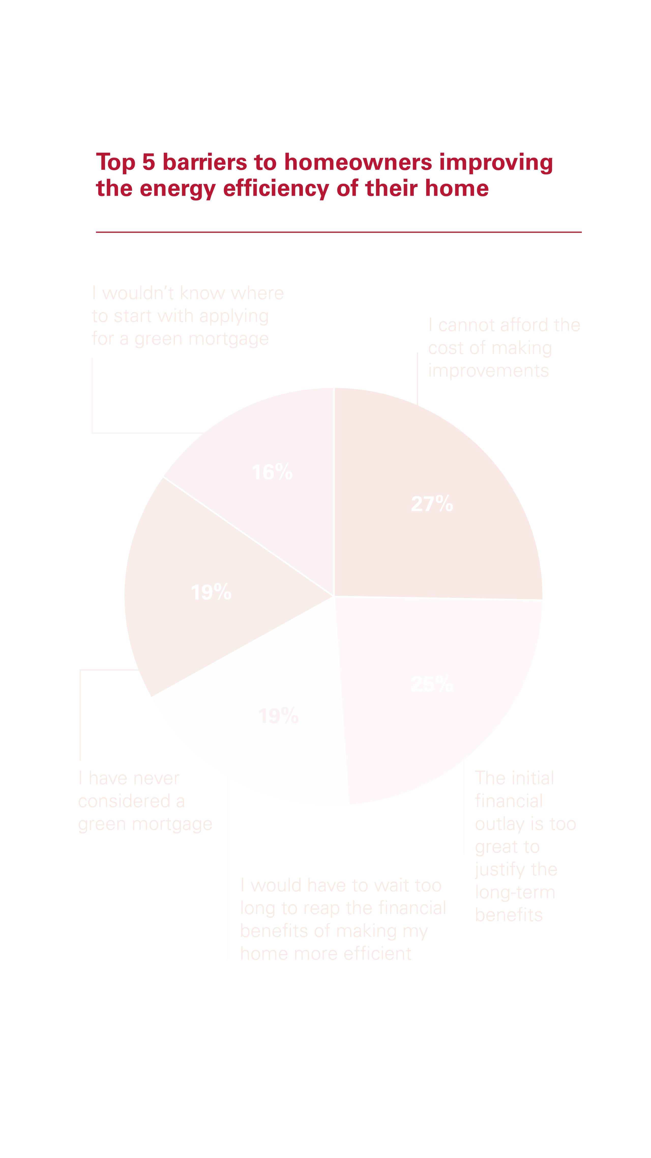 In addition, a further 25% said the initial financial outlay needed to improve the energy efficiency of a home was just too great to justify the longer-term benefits. This was also cited as a key barrier to consumer take-up by 75% of brokers and 84% of mortgage lenders.