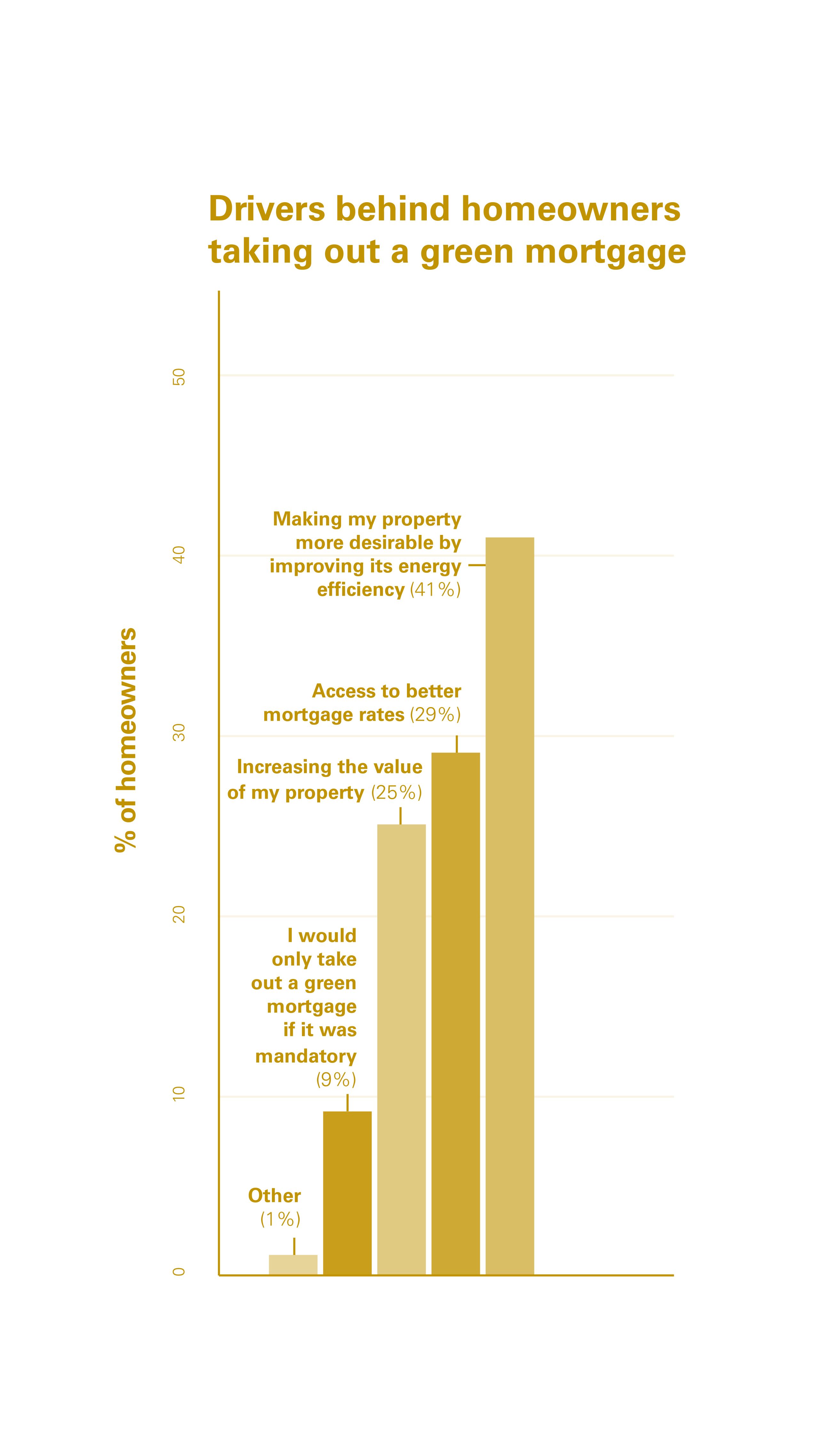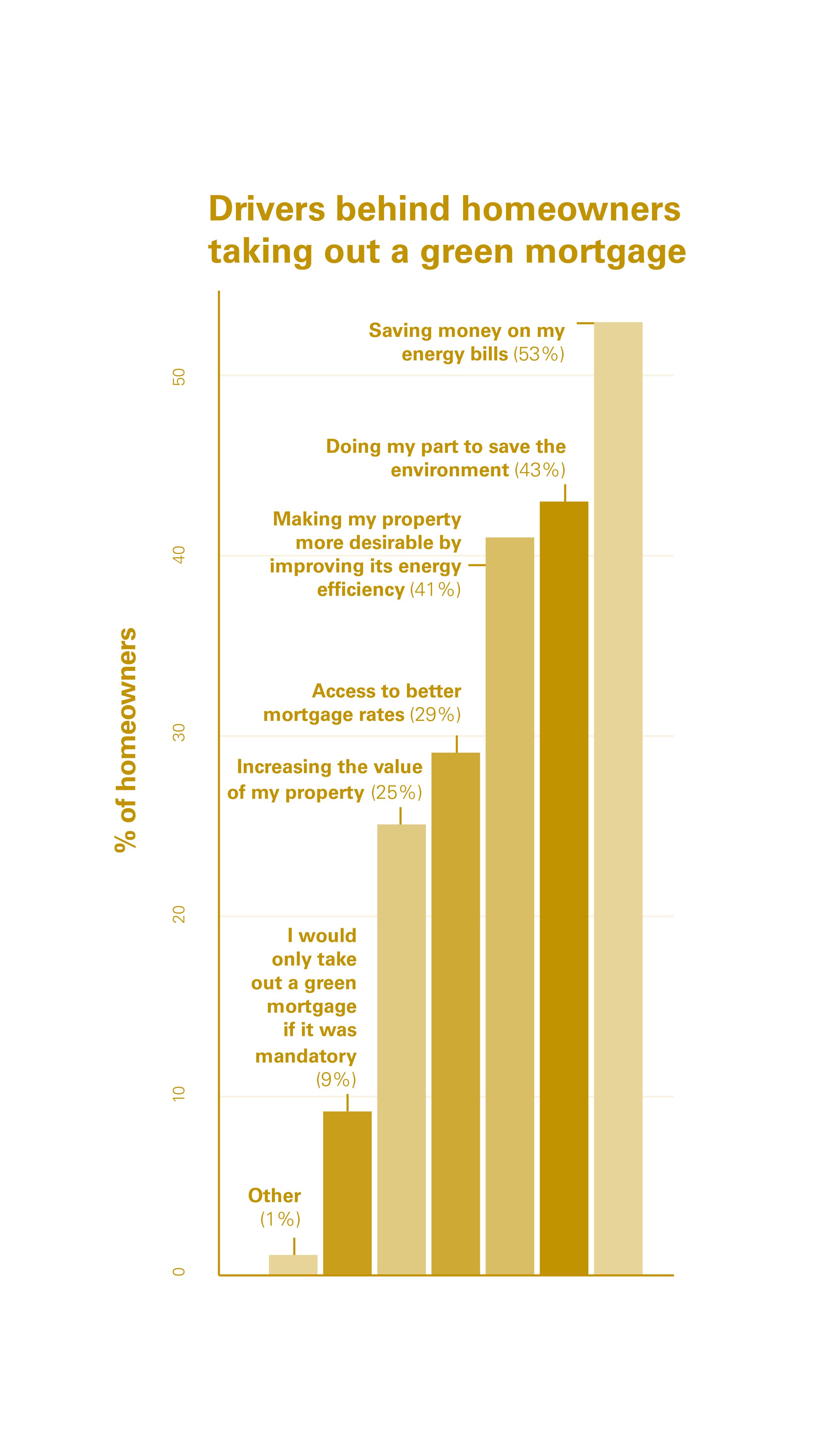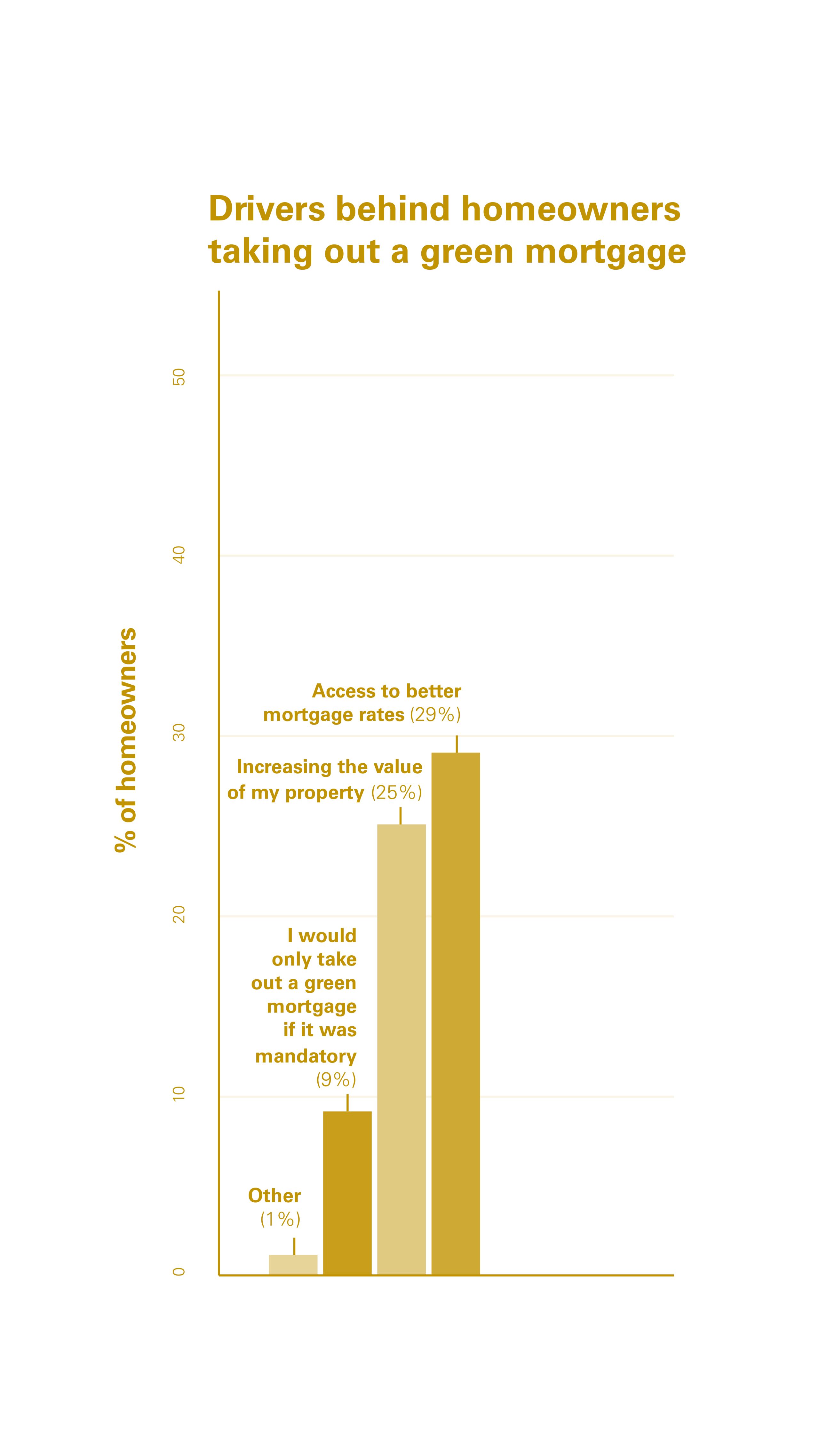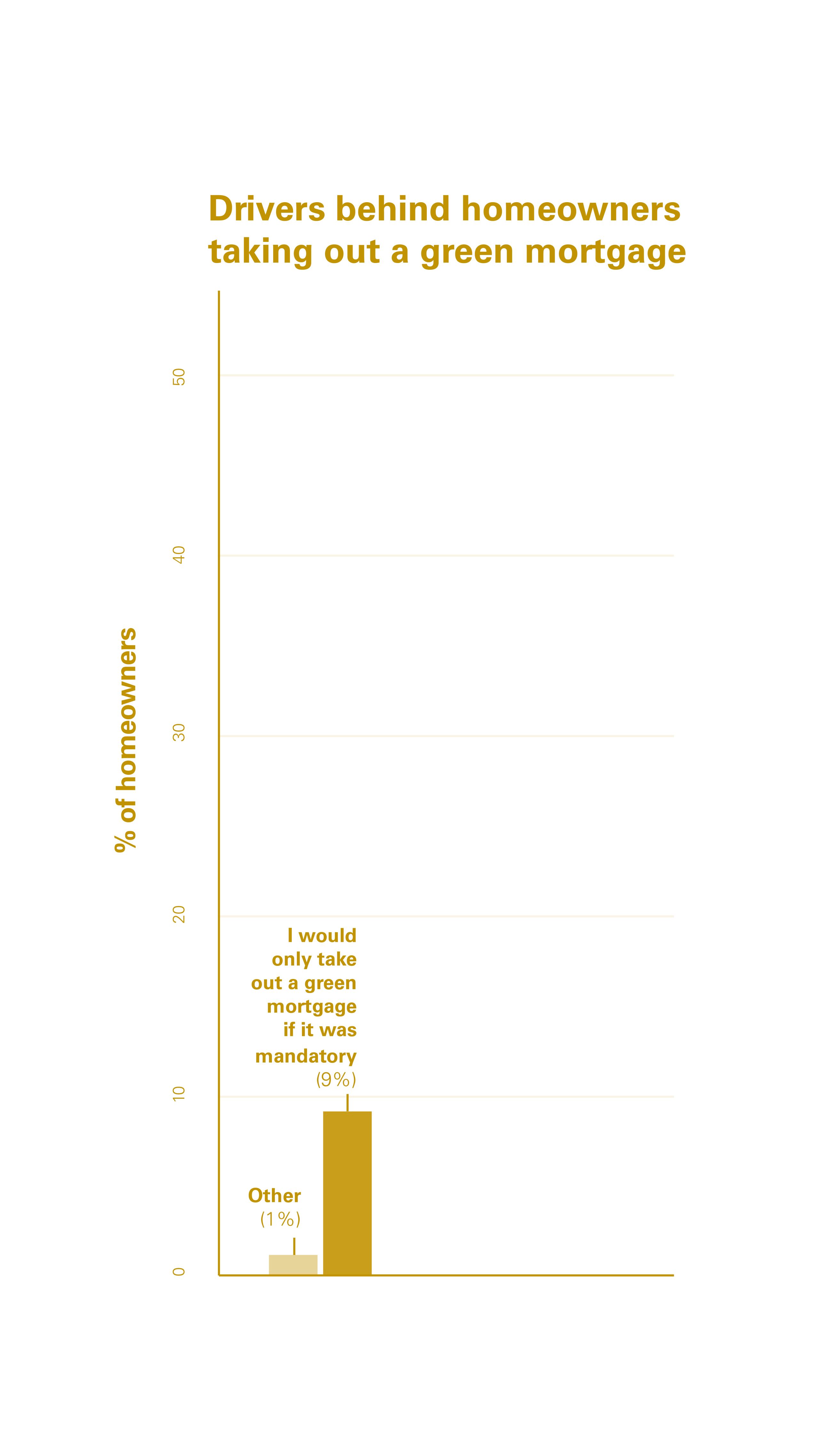 Indeed, saving money on energy bills was in fact cited as the biggest driver behind the preparedness to take out a green mortgage by 53% of consumers, followed by making energy improvements to their homes (43%). Accessing better mortgage rates was cited as a key driver for 29% of consumers, with just 9% of borrowers saying they would only take out a green mortgage if it were mandatory.