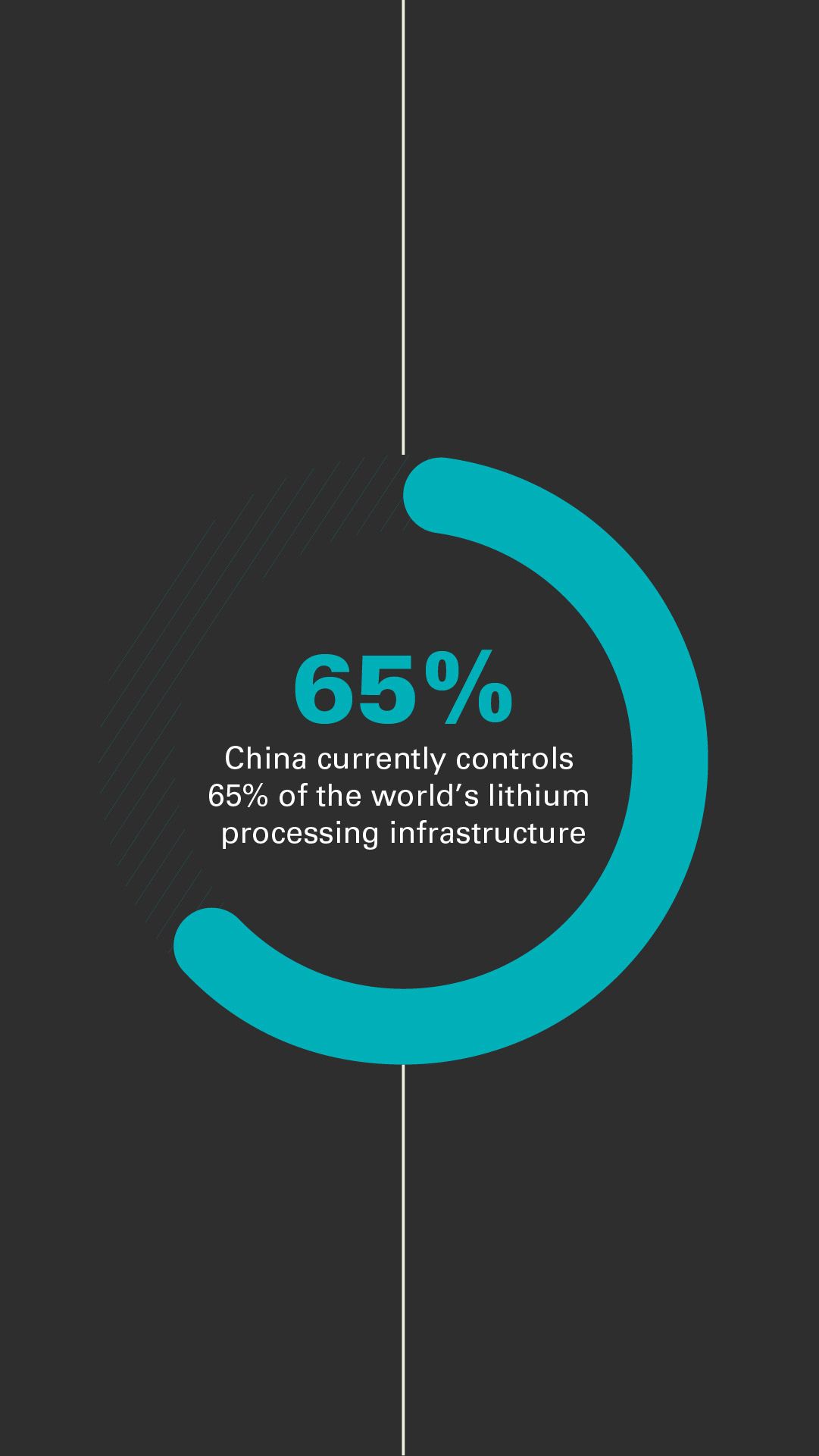 China currently controls 65% of the world’s lithium processing infrastructure and is continuing to invest heavily, recognising its importance to the wider battery value chain.