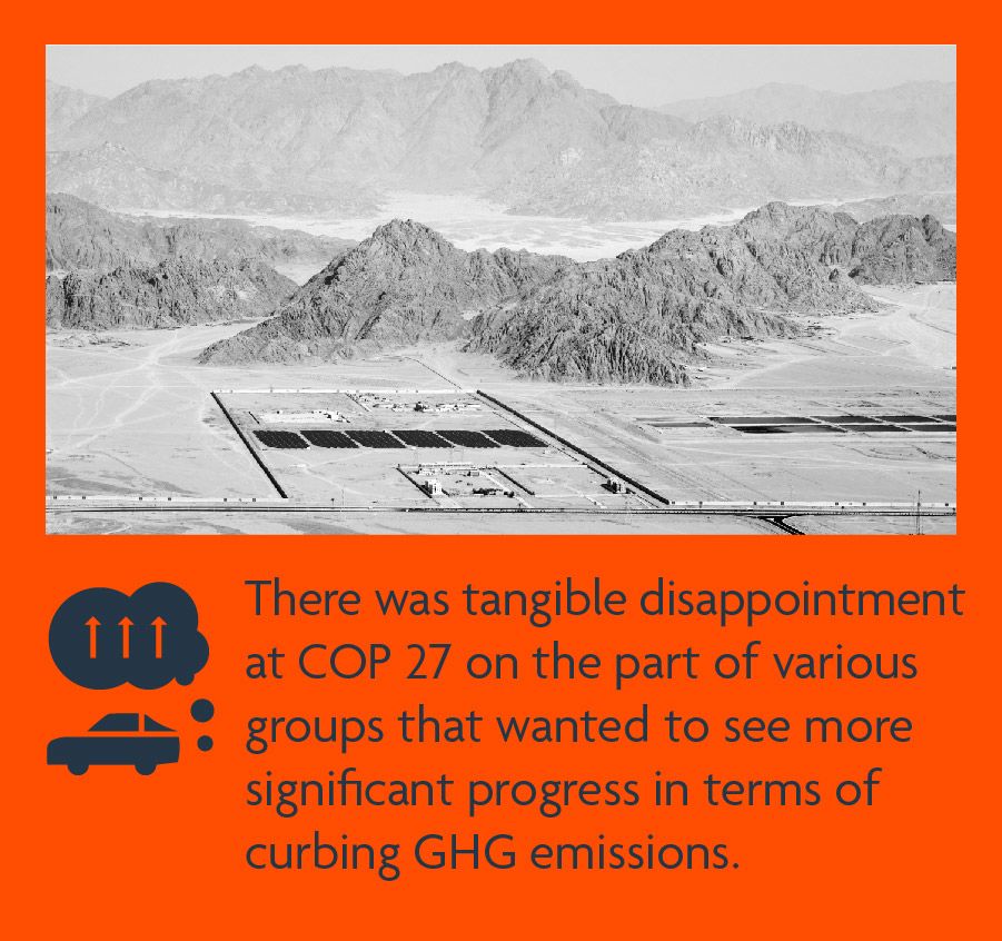 There was tangible disappointment at COP 27 on the part of various groups that wanted to see more significant progress in terms of curbing GHG emissions.
