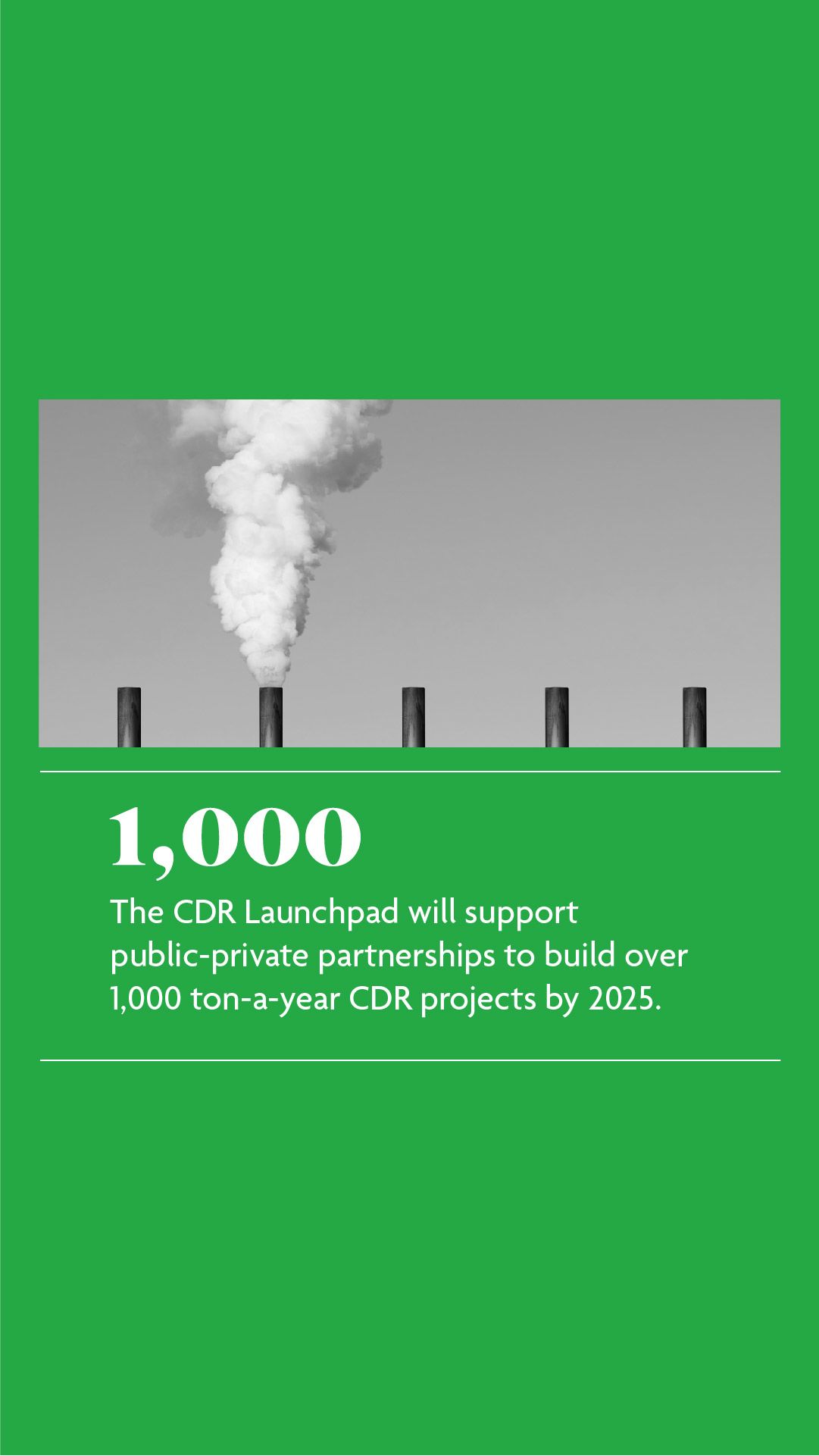The CDR Launchpad will support public-private partnerships to build over 1,000 ton-a-year CDR projects by 2025