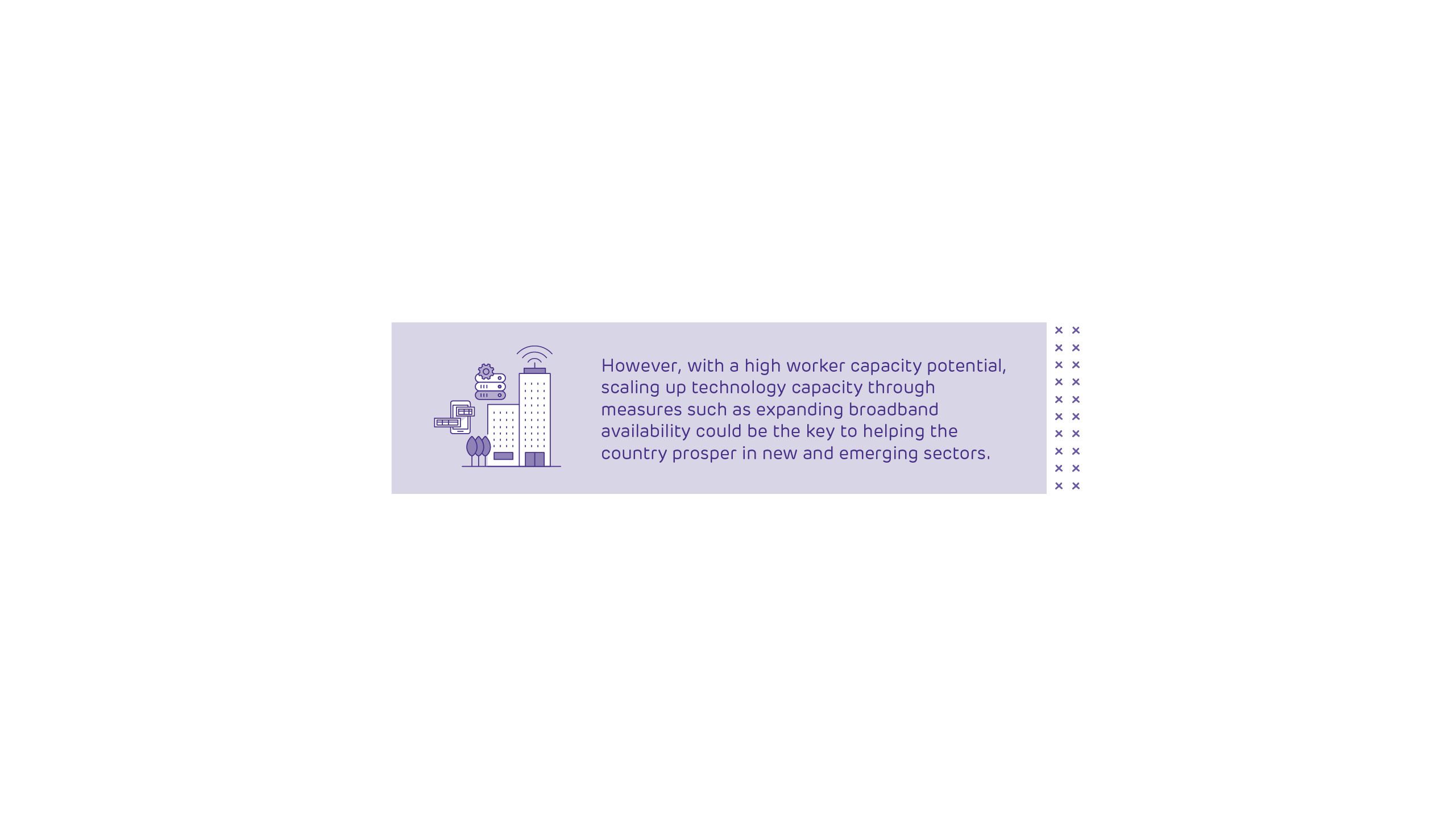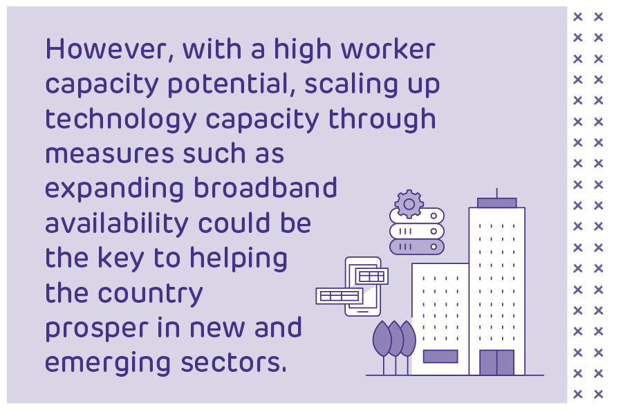 The Technological Capacity pillar looks at three key indicators: internet-user prevalence, online connectivity and digital business employment. The uptake of technology and the quality of the digital sector in an area is a critical part of its attractiveness as an investment destination and is intrinsically linked to R&D levels and innovation potential.