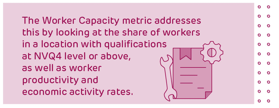 While local authority areas and regions may offer opportunities for innovation, business growth can be inhibited by local skills gaps or shortages. Put simply, people are a critical factor in a location’s investment potential.