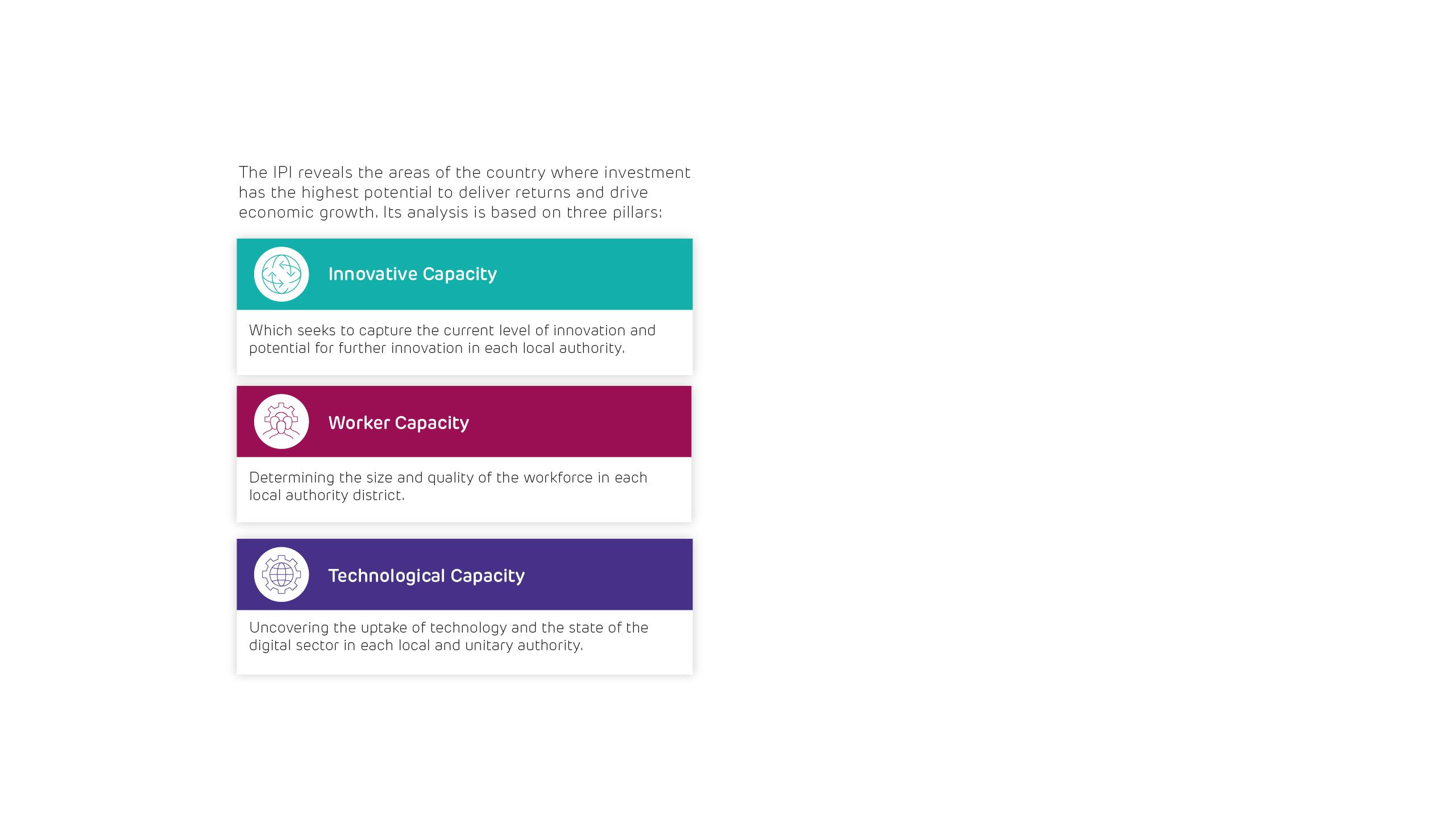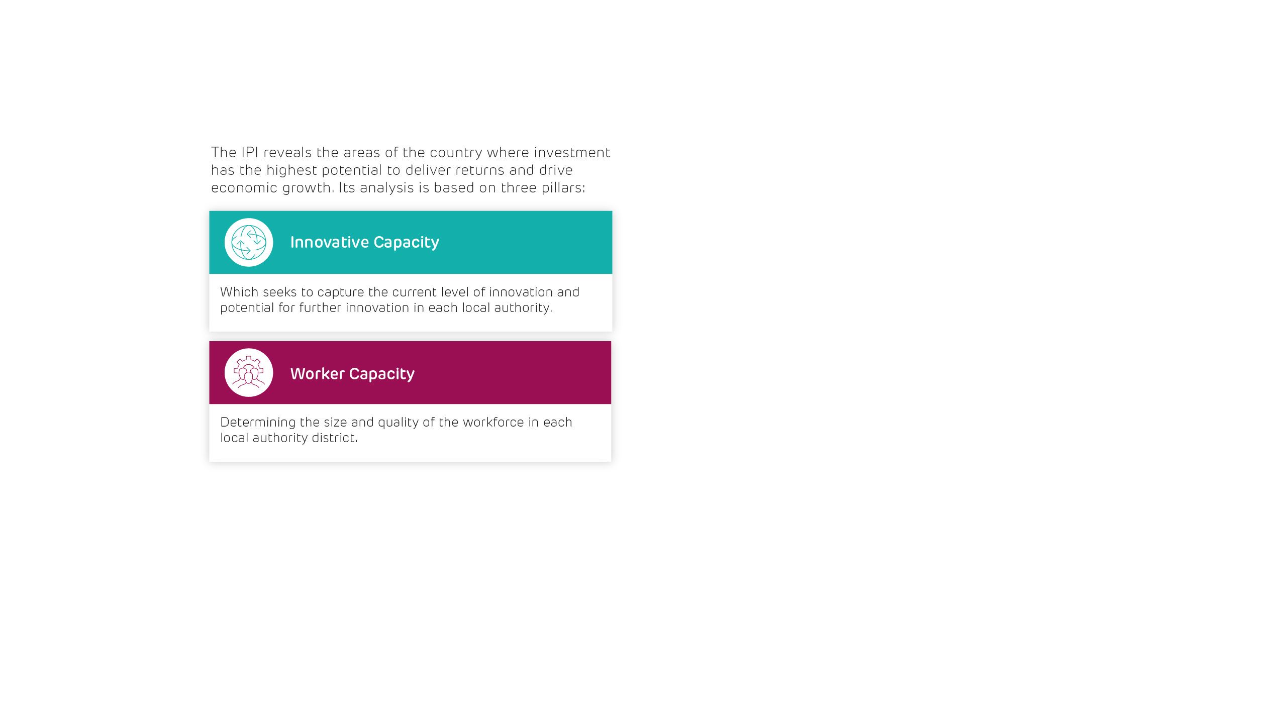 The IPI reveals the areas of the country where investment has the highest potential to deliver returns and drive economic growth. Its analysis is based on three pillars:
