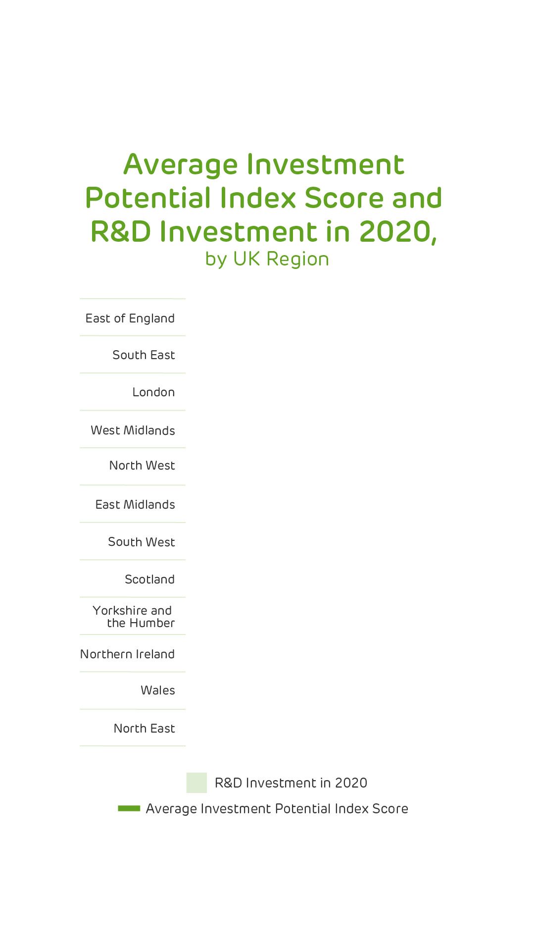 Data in this report was gathered as part of ForrestBrown’s Investment Potential Index research. The research collected a list of indicators which are important measures of innovation capacity, worker capacity and technological capacity. Upon collecting the data on the indicators using a range of metrics, we scored each local/unitary authority based on its performance as measured by the particular indicator. For each indicator, the same steps were followed, allowing us to assign a value between 0 and 100 to each local/unitary authority: