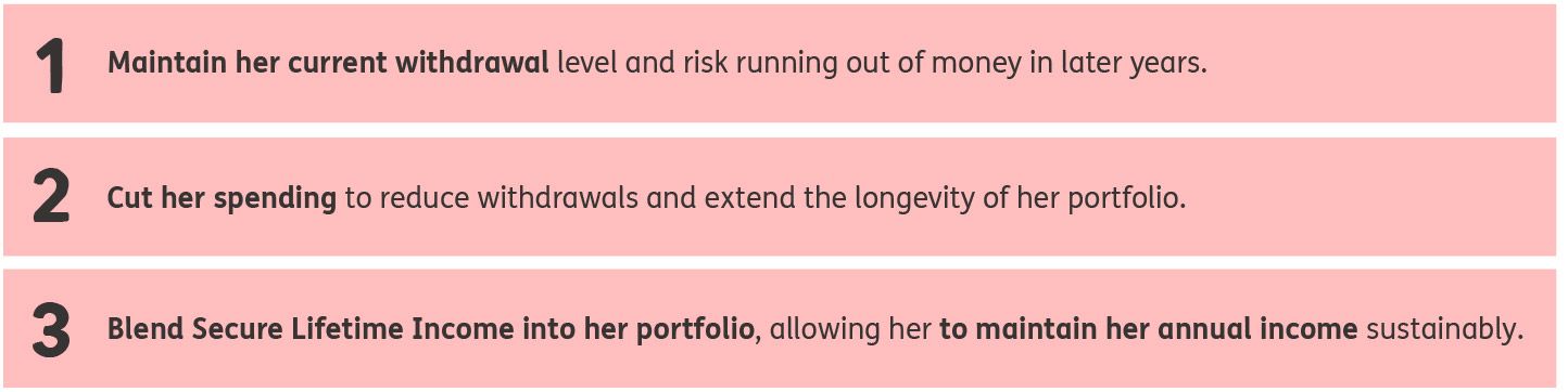 - Secure a guaranteed income that covers her £16,000 annual withdrawals, helping to remove pressure from her remaining investments.